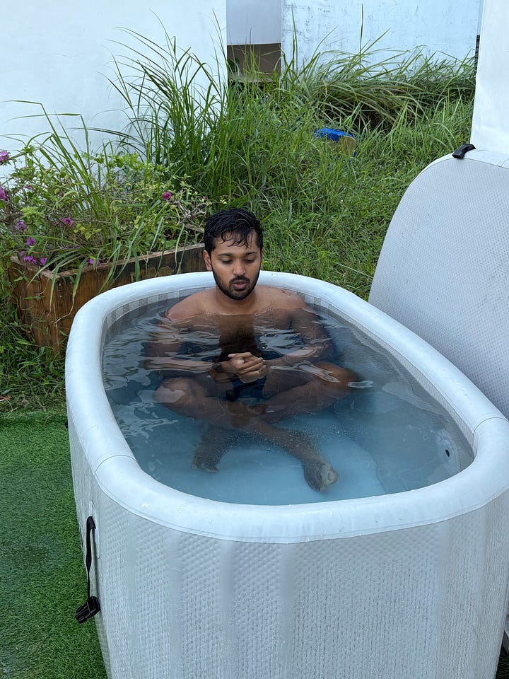 Did an ice bath for recovery, which was way harder than I thought it would be cause the water was at 3 degrees plus the water keeps rotating because of the machine, unlike when you do it with ice.