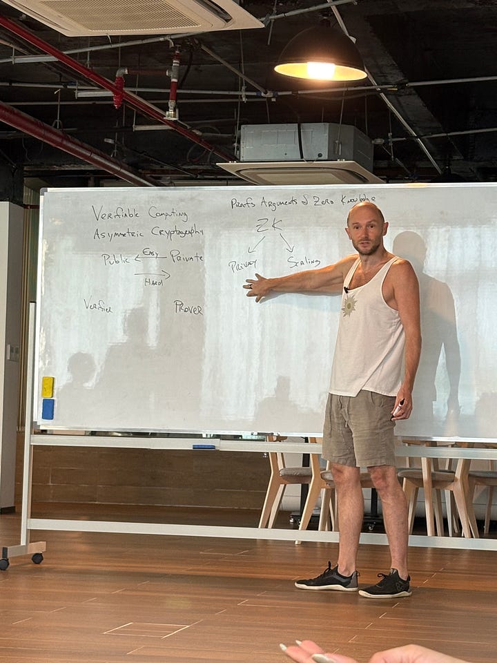Attended a “ZK for dummies” session, didn’t really understand too much because Chris (the speaker) went kinda deep into the math behind ZK
