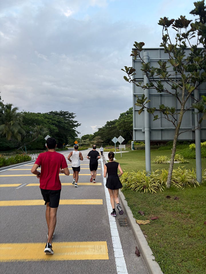 Did a 6K run instead of a burn session. Ran at a pace of 6:18, which is back to my original pace (pre-injury). Running with faster runners just does that to you. Ofc I finished last but was still great run. (Planning to run every Wednesday now.)